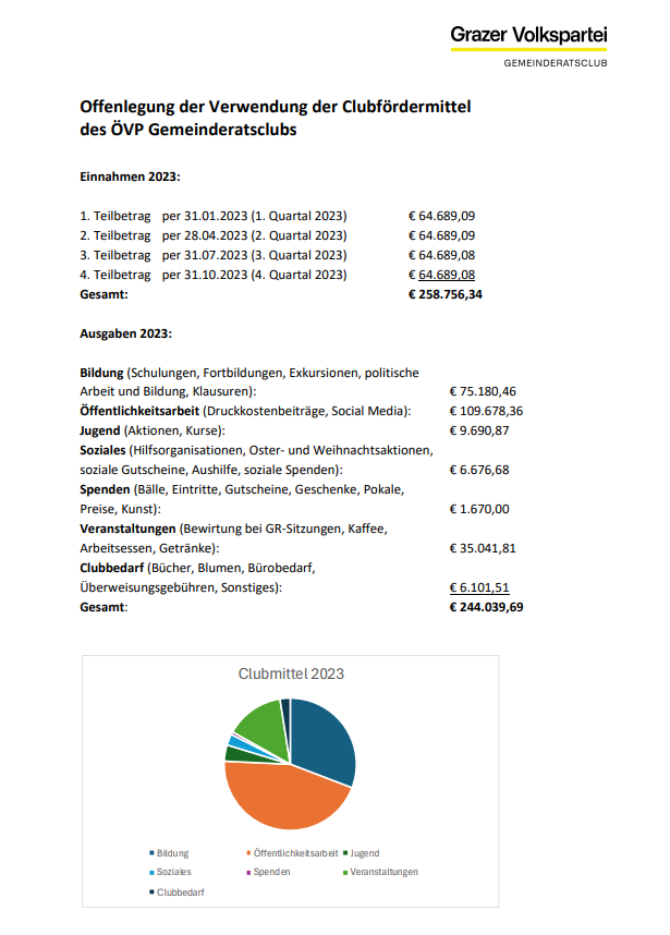 Hier – Offenlegung der Verwendung der Clubfördermittel des ÖVP Gemeinderatsclub