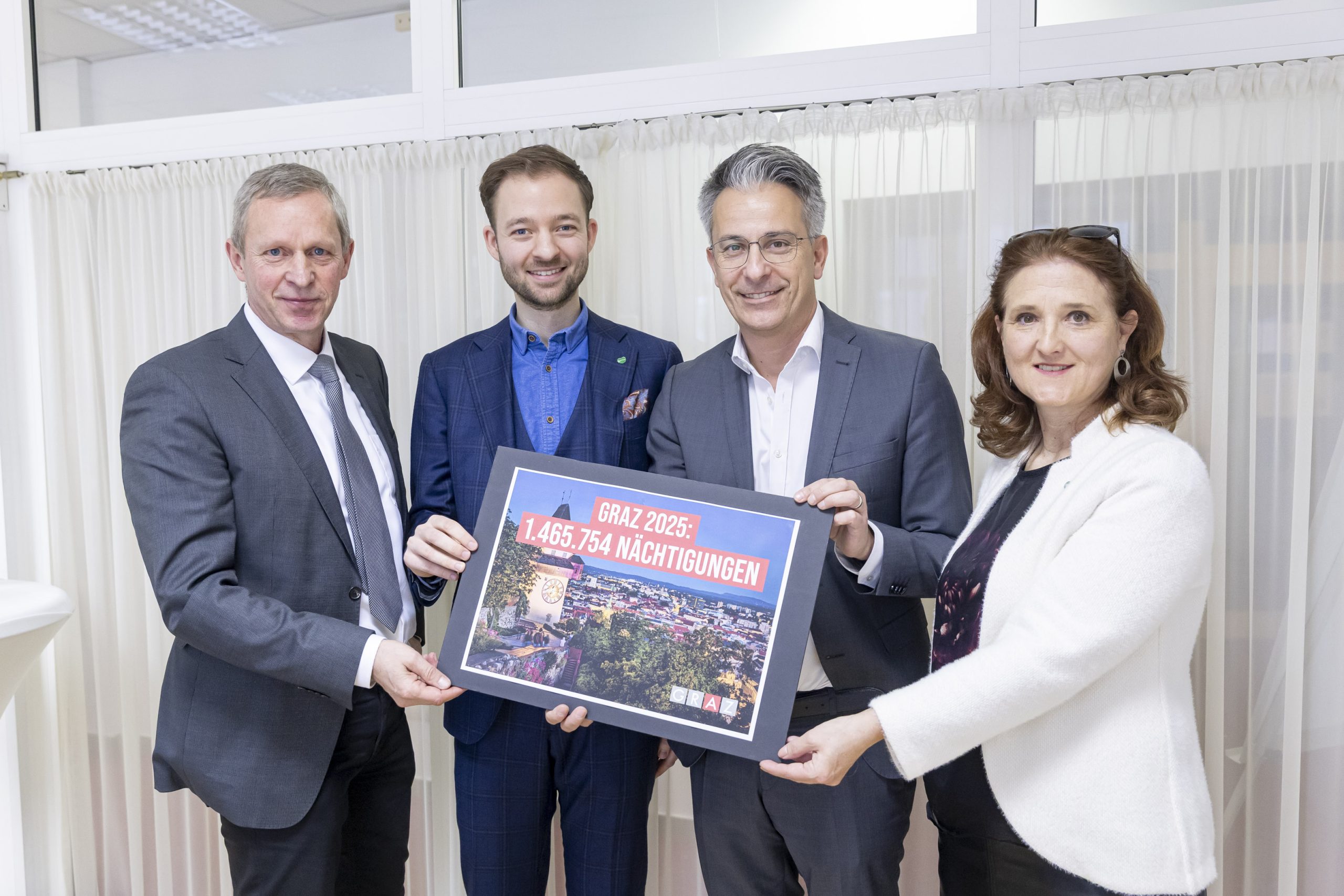 Mit 1.465.754 Nächtigungen verzeichnet Graz im Jahr 2025 einen Anstieg um 5,2 % bzw. rund 72.500 zusätzliche Nächtigungen gegenüber dem Vorjahr. Damit wurde ein neuer Bestwert erreicht. Gleichzeitig war das Bettenangebot in der Stadt so hoch wie nie zuvor, und auch der gemeinsame Werbedruck (Tourismusverband Region Graz gemeinsam mit Steiermark Tourismus) erreichte ein Rekordniveau.